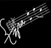 A person with short dark hair, glasses, and a black blazer holding a conductor's baton, smiling with eyes closed against a black background.